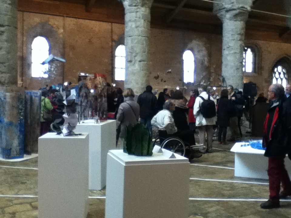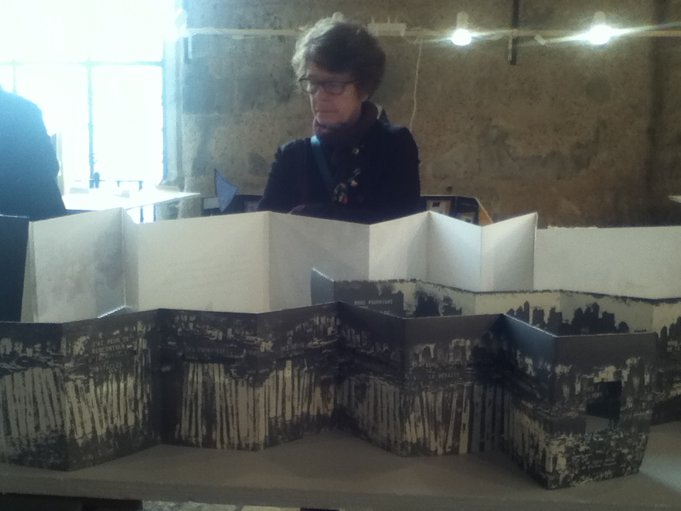 Several thousand viewers came from all over France this year to enjoy this comprehensive exhibition in the beautiful space in Chartres. There were over three hundred books by one hundred and sixty artists, designers and writers, from France and abroad. Twelve countries were represented. All the artists responded to the theme of the exhibition “Et si nous allions”… (“if we were to go”…) The work ranged from very small books to large video installation and were created from various materials, paper, wood, fabric , glass, ceramics ….